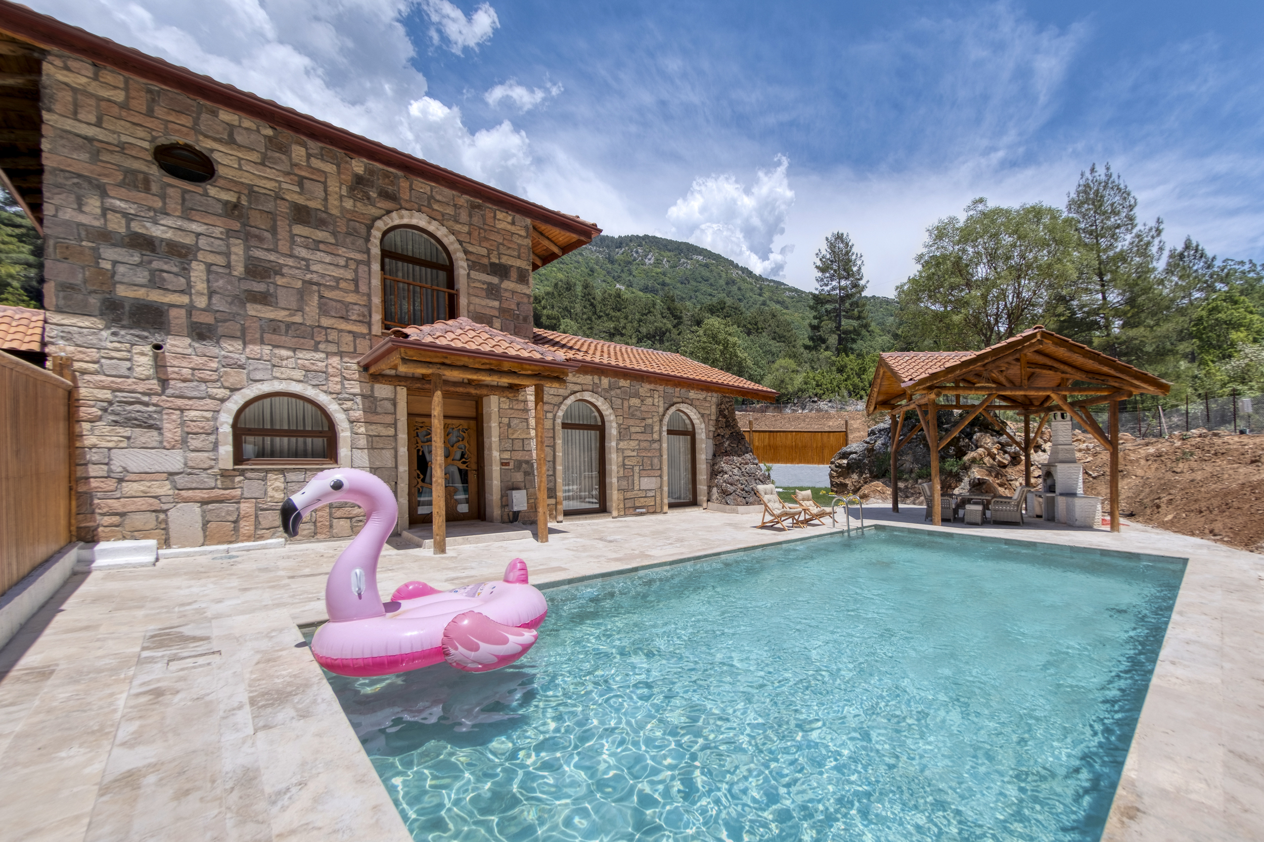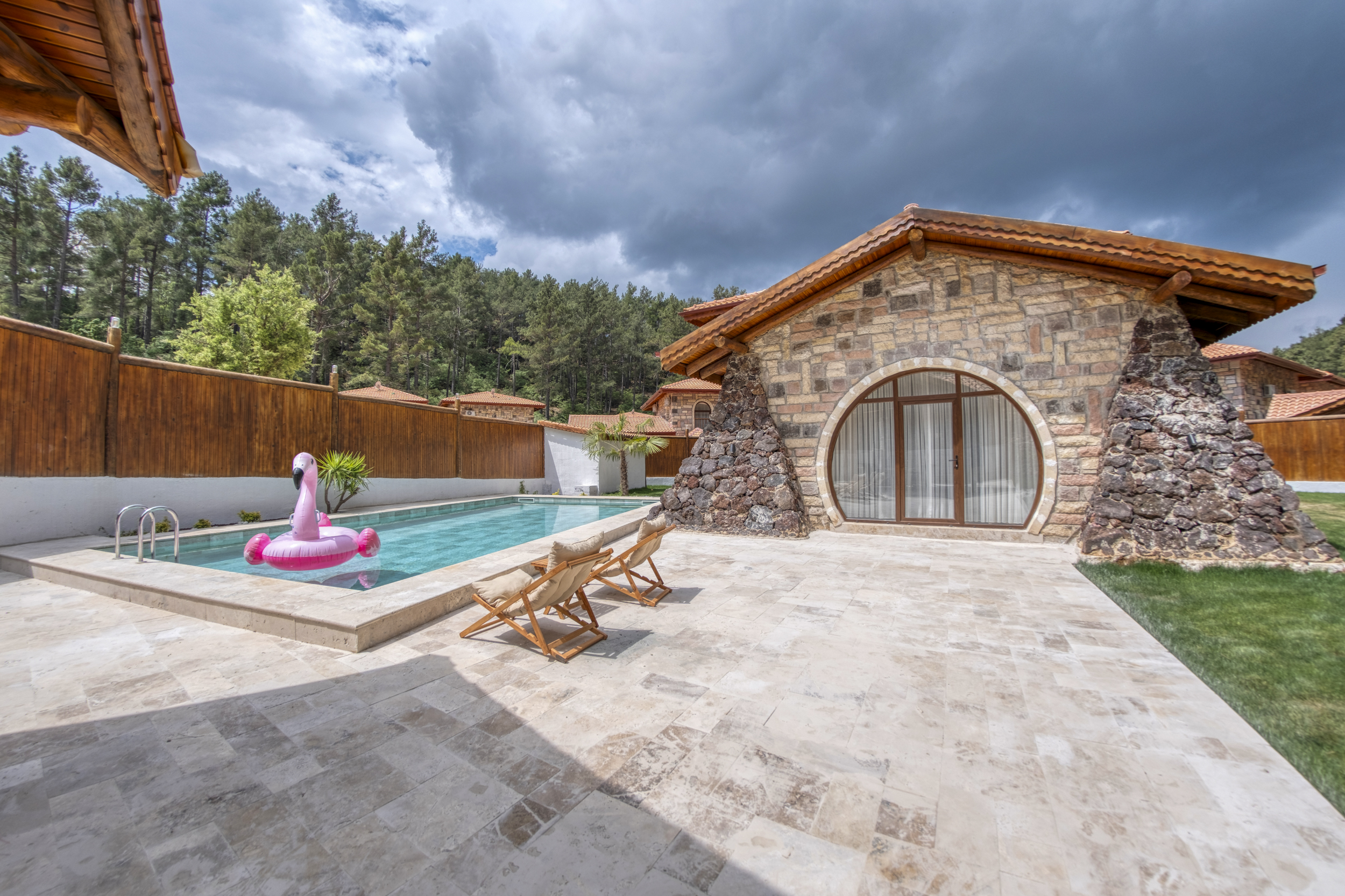 Villamızda begonvillerle çevrili huzurlu bir yaşam sizi bekliyor. 350 m² genişlikte bir bahçe ve 50 m² havuzla doğayı kucaklayın.
